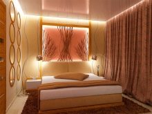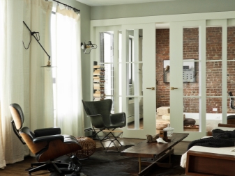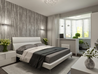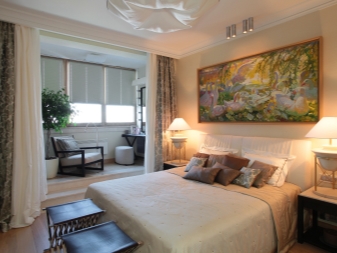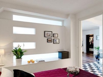 - إذا تم فصل غرفة النوم عن باقي الشقة بواسطة قسم ، فمن الأفضل صنعها من الزجاج أو البلاستيك الشفاف أو المصنفر. يمكن استخدام عوارض إضافية لتقسيم القسم إلى أجزاء وتقليد فتحات النوافذ.