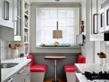 مطابخ بمقاسات 4 × 4 م تتطلب ترتيبًا مدروسًا لسماعة الرأس وقطع أثاث أخرى. يجب وضع مجموعة من الخزانات حول المحيط. يجب ألا تكون طاولة الطعام طويلة جدًا. إذا سمح موقع النافذة ، يمكنك تثبيت ركن المطبخ. من الأفضل اختيار خيارات غير مرهقة.. في غرفة من هذا النوع ، يمكنك إطالة المساحة بصريًا بمساعدة المرايا..