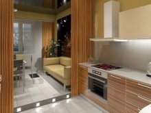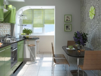 توفر الشرفة ، جنبًا إلى جنب مع المطبخ ، إمكانيات إضافية للخيال. يمكن تجهيز الشرفة الكبيرة بغرفة طعام.