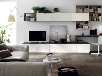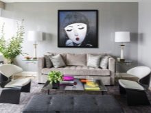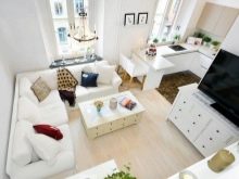 في هذه الحالة استبعاد الخزائن والأرائك الضخمة والكراسي. ضع الأثاث على طول الجدران المجانية واستخدم الحد الأدنى من عناصر الديكور واللوحات الكبيرة.