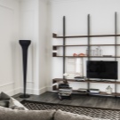 - بالنسبة لترتيب الكتب وعناصر الديكور والساعات والتماثيل ، سيبدو الرف الأنيق أكثر تناسقًا من عدة أرفف جدارية.