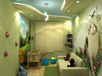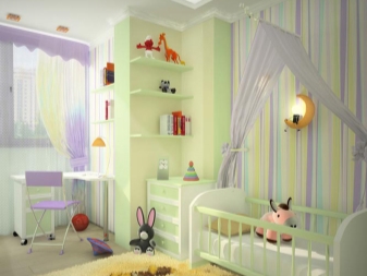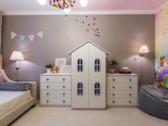 في هذه الحالة ، يأخذ المصمم في الاعتبار ليس فقط الجنس ، ولكن أيضًا عمر الطفل. التصميمات الداخلية الرقيقة والخلفيات ذات الأنماط اللطيفة والمنسوجات الخفيفة مناسبة للأطفال. من الأفضل اختيار أثاث بسيط وعملي ، وليس تشويشًا في الغرفة ، حيث يوجد العديد من الألعاب والكتب والأشياء للإبداع في حياة الطفل. يتم تنظيم الطلب بمهارة بمساعدة الرفوف والأدراج والرفوف. بالنسبة للغرف الصغيرة ، هناك العديد من المجموعات الجاهزة من الأثاث المضغوط وسماعات الرأس المحولة..