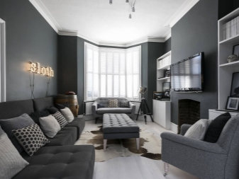 هناك غرف على شكل حرف L. هذا أيضا يمكن أن يتحول إلى كرامة. منعطف في الغرفة يوحي بتقسيم المناطق. إذا سمحت المنطقة بذلك ، يمكن أن يصبح الجزء الأصغر مكتبًا أو منطقة لتناول الطعام. يمكن أن تستوعب مساحة أكبر أريكة وكراسي مع طاولة قهوة.