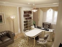 تتناسب الكلاسيكيات الإنجليزية مع الأثاث الخشبي المصنوع من سلالات باهظة الثمن أو التكنولوجيا الفائقة المشرقة جيدًا في غرفة منفصلة للعمل. بالإضافة إلى رفوف للمستندات وسطح المكتب ، من الممكن تجهيز مكتبة منزلية في المكتب.