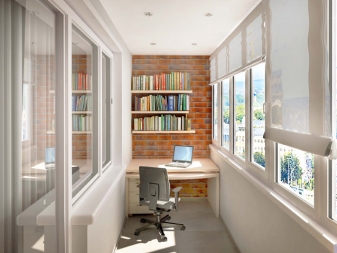 في الشقق القديمة ، يتم تحويل المخازن التي يبلغ حجمها 2 × 2 متر أو أقل إلى مكتب حيث يلزم وضع جهاز كمبيوتر أو مكتب وأدراج ورفوف لتخزين المستندات ، بالإضافة إلى التفكير في نظام إضاءة فعال.
