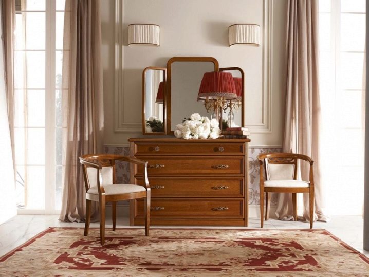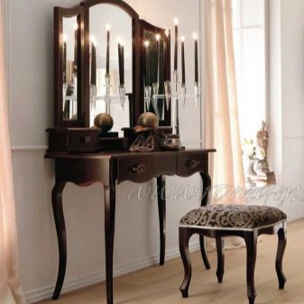 - الميزة الكبيرة لهذا المنتج هي أنه يمكنك النظر إلى نفسك من جميع الجوانب. هذا هو السبب في أن سمة الأثاث هذه محبوبة جدًا من قبل الجنس العادل..
