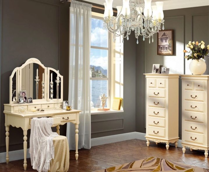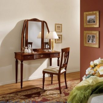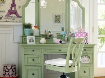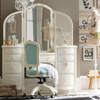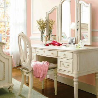 الأكثر فائدة ، تتناسب هذه المنتجات مع التصميم الداخلي لغرف النوم. يمكن أن تكون التعريشة لكل من البالغين والأطفال. لذلك ، غالبًا ما يختار الآباء منضدة زينة للأطفال في غرفة البنات. ستكون طاولة الجمال النسائية هذه مناسبة في أي عمر..