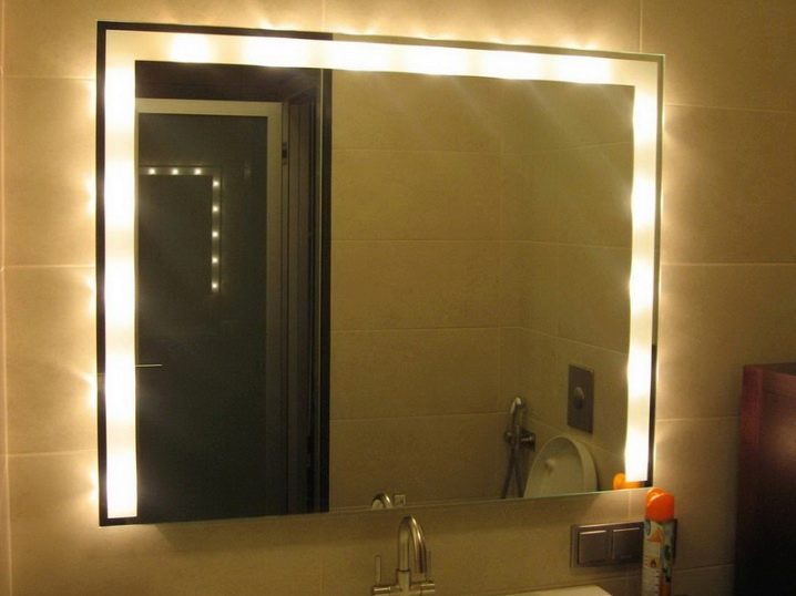 - الخلفية. خطت تكنولوجيا صنع المرايا خطوات كبيرة إلى الأمام. الآن يلجأ المزيد والمزيد من الشركات المصنعة إلى استخدام شرائط LED وأنواع أخرى من الإضاءة ، والتي يتم تركيبها مباشرة على سطح المنتج. بهذه الطريقة ، ينعكس الضوء عن طبقة المرآة ، مما يخلق توهجًا ناعمًا وغير مزعج. سيبدو هذا النوع من المرايا جميلًا جدًا في غرفة النوم ، مما يضفي الرومانسية والغموض على الجو. ستسمح لك وظيفة المنتج باستخدام هذه العناصر في الحمام وفوق منضدة الزينة – من الملائم تنفيذ إجراءات العناية.