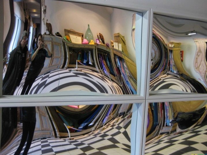 - مرآة زائفة. نظرًا للأشكال المنحنية ، يمكن أن تكون المرايا ممتعة لغرفة الطفل. في بقية المباني لغرض وظيفي ، لن يكون لهذا الخيار ، ولأغراض الديكور يمكن أن يشوه الموقف بشكل قبيح..