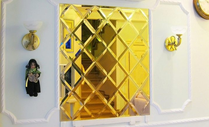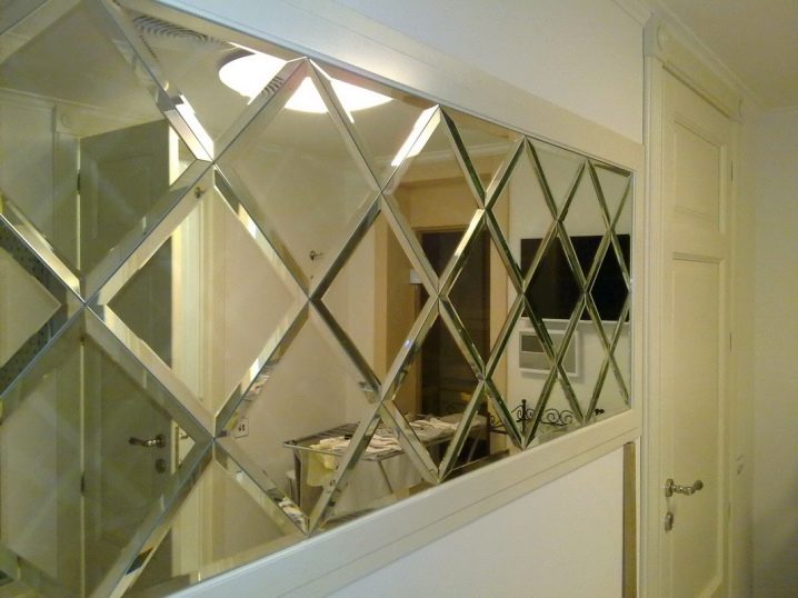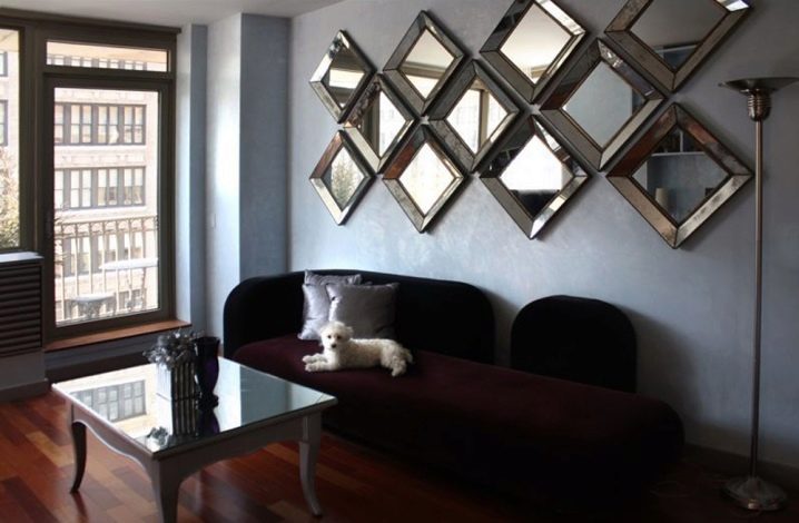 - مركب. يتكون السطح العاكس من عدة وحدات يمكن أن تكون مترابطة أو ثابتة بالقرب من بعضها البعض. غالبًا ما يحمل استخدام هذا النوع وظيفة زخرفية. تخلق تركيبات الشخصيات الفردية (مثلثات ، مربعات ، قلوب ، قطرات) مسرحية مثيرة للضوء وتصبح لهجة فعالة في الغرفة.
