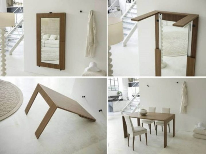 - محولات. هذا هو مزيج من عدة أنواع من المرايا في واحدة أو مع قطع أثاث وديكور أخرى. يمكن أن تكون المرايا ثنائية أو ثلاثية الأجنحة ، مغلقة مثل الخزانة ، يتم سحبها من طائرات الأثاث ، ومجهزة بأرفف وأدراج ملحقة بها. تتيح التقنيات الحديثة إمكانية الجمع بين أسطح المرايا والساعات وحتى أنظمة التحكم باللمس في المنزل مثل محطات الطقس وأشياء أخرى..