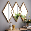 - المرايا الجانبية. تختلف في التصميم مع حواف معكوسة بزوايا مختلفة. تكتسب قطعة الأثاث هذه الآن شعبية بسبب تفردها. تزيين الغرفة بمرآة ذات أوجه يمنحك أسلوبًا أنيقًا وفاخرًا وجوًا وخفة. لن تترك الألواح المرآة ذات الأوجه في غرفة المعيشة أو الانعكاسات المنكسرة في الحمام أي شخص غير مبال.