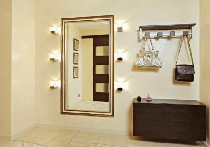 إذا كنت بحاجة إلى إضاءة إضافية بالقرب من المرآة ، على سبيل المثال ، في الردهة أو على منضدة الزينة ، يمكنك استخدام شريط LED المدمج إذا كنت تزين الغرفة بأي نمط حديث ، على سبيل المثال ، التكنولوجيا الفائقة أو بساطتها. في حالة التصميم الأكثر تقليدية ، من الأفضل وضع وحدة إنارة ذات تصميم مناسب أو عدة شمعدانات بترتيب متماثل بالقرب من السطح العاكس..