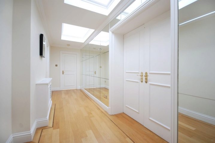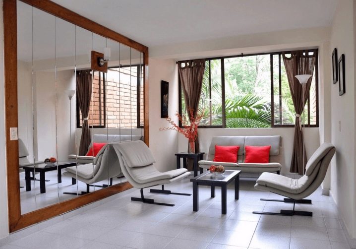 - بانوراما. نوع من المنتجات نادرًا ما يستخدم في الشقق. واحد أو أكثر من الجدران مغطاة بالمرايا. في بيئة المنزل ، إنه غير مريح ، ويخلق شعورًا بعدم الراحة والبرودة واللانهاية. لكن في الصالات الرياضية أو المحلات التجارية ، هذا النوع من الزخرفة مناسب تمامًا..