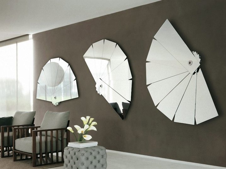 تؤكد هذه المرايا تمامًا على التصميم الداخلي الدقيق لغرفة نوم الأطفال أو المراهقين. ستجد منتجات Avant-garde مكانها في أي ركن من أركان الشقة. الآن يمكن تزيين الجدران في غرف المعيشة أو الممرات بتركيبات كاملة من المرايا الفردية ، على سبيل المثال ، أوراق الشجر أو الزهور أو الحروف أو الدوائر فقط..