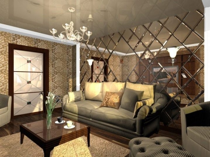 - في غرفة المعيشة, كقاعدة عامة ، ليست هناك حاجة لوضع المرايا للنظر هناك. وهذا يعني أن الغرض منها في هذه الغرفة لا يمكن إلا أن يكون زخرفيًا. في هذه الحالة ، كل هذا يتوقف على ذوقك ومحفظتك..