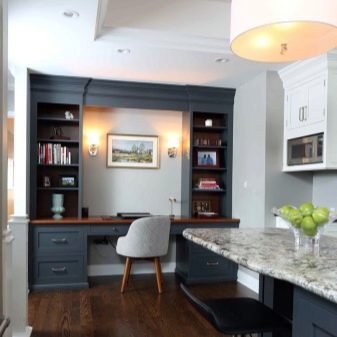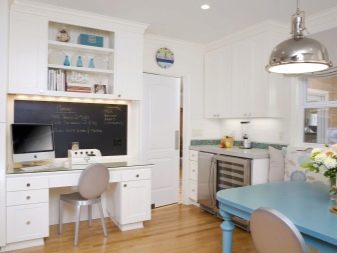 يمكن تنظيم مكان العمل ، إذا رغبت في ذلك ، حقًا حتى في المطبخ ، على الرغم من أن البخار والحرارة والروائح اللذيذة يمكن أن تشتت الانتباه وتتداخل وتؤثر على الأدوات المستخدمة أثناء العمل والأشياء والمعدات.
