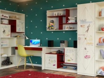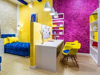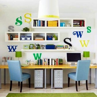 يمكن أن يتضمن مكان عمل البالغين أيضًا استخدام هذا النوع من أغطية الجدران الواقية. كل هذا يتوقف على المسؤوليات الوظيفية والمهارات المهنية. يجب أن يكون اللون السائد في التصميم الداخلي غير مزعج وممتع وقريب من الحيادية. إذا كنت تحب النغمات الداكنة ، فإن طريقة التباين ستساعد في إنشاء المساحة المثالية..