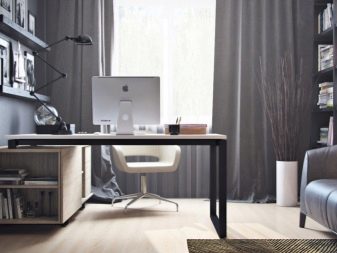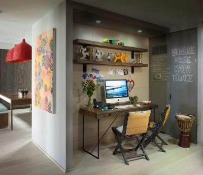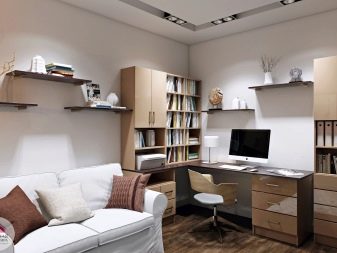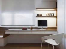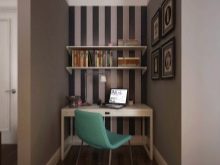 غالبًا ما يكون مكان العمل في المنزل مساحة صغيرة. لذلك ، فإن استخدام الألوان الفاتحة في التصميم الداخلي مناسب. نتيجة لهذا ، سيكون مريحًا حتى بالنسبة لشخص لا يحب أن يكون في مكان ضيق.. يجب اختيار مواد زخرفة الجدران مع مراعاة عامل مثل درجة الاتساخ.. يتم تحديد الدرجة المطلوبة من ثبات الطلاء من خلال مخاطر التلف.