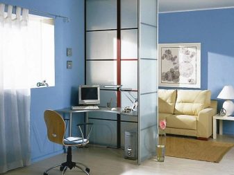 الإضاءة مهمة. تحتاج أحيانًا إلى شراء مصباح طاولة أو شمعدان أو مصباح أرضي ، وتغيير مخطط الأسلاك ، عندما يتعلق الأمر بخزانة مريحة وورشة عمل صغيرة بأربعة جدران وباب. التقسيم ، ستساعد الشاشة على تغيير التصميم داخل غرفتك الخاصة. إذا كانت الشقة بأكملها تحت تصرف شخص واحد ، فيمكن تخصيص مكان العمل بمساعدة قسم فقط من أجل المتعة الجمالية ، بحيث يكون من السهل أن تظل أنيقًا ومنضبطًا. سيؤكد تقسيم المناطق على أهمية العمل.