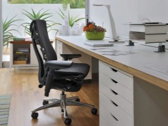 يعد الكرسي ذو ارتفاع مسند الظهر القابل للتعديل وموضعه عنصرًا مناسبًا لترتيب مكتب منزلي. Tonus ضروري أثناء عملية العمل. إنه مدعوم بكرسي بمقعد صلب نسبيًا ومسند ظهر مشابه. عندما تكون عضلات الجسم متوترة قليلاً ، يكون من السهل التركيز والتركيز.