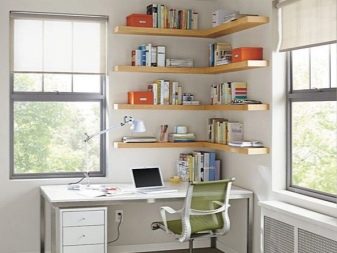 في المكتب ، غالبًا ما لا يمتلك الموظفون عددًا كبيرًا من الأرفف تحت تصرفهم. يتم تنظيم جميع الأوراق باستخدام المجلدات والمجلدات والمحفوظات. أصبحت الصور والمزهريات المزينة بالورود والألعاب والأشياء الممتعة الأخرى مناسبة الآن لوضعها في مكان قريب لتحسين حالتك المزاجية. للقيام بذلك ، تأكد من تثبيت الرفوف. يمكن أن تكون خزانة كاملة بارتفاع نصف جدار أو نسخة مفصلية (نصف جدار في العرض).