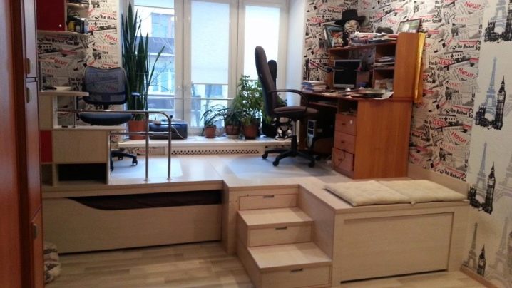 يعد سرير المنصة القابل للسحب خيارًا مثيرًا للاهتمام لحل مشكلة تقسيم مساحة صغيرة في المنطقة. سيحب شخص ما طاولة التحويل أكثر ، لأن عنصر المصاريف في هذه الحالة أقل ، فلن تضطر إلى إعادة الغرفة بالكامل.
