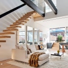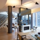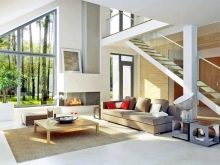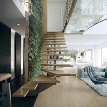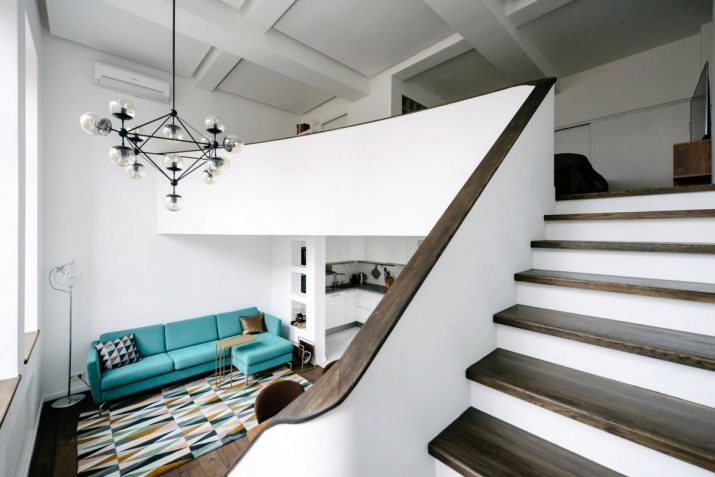 عنصر هيكلي لا غنى عنه هو الدرج. يجب أن يكون هناك مساحة كبيرة لذلك ، وإلا فإنه سيكون غير مريح وشديد الانحدار. عادة ما يتم وضعها على طول الجدار – وهذا يسمح لك باستخدام مساحة المعيشة بشكل مريح قدر الإمكان..
