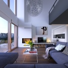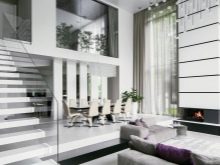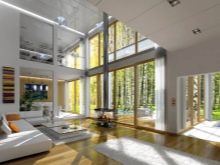 يتضمن مفهوم الإضاءة المزدوجة الجمع بين طابقين إلى ثلاثة طوابق. هذا يؤدي إلى حقيقة أن عدد الغرف المخصصة للمعيشة قد انخفض. لذلك ، يتم إنشاء مثل هذه المشاريع بشكل أساسي في المنازل ذات المساحة الكافية.. يجب أن تحتوي هذه الغرف على سقوف عالية وأن تكون فسيحة ، ويجب أن يوفر التصميم نظام تدفئة إضافيًا..