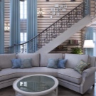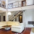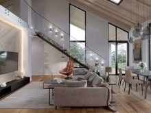 - تصبح الإضاءة غير الواقعية في الغرفة بأكملها ، المليئة بالضوء والهواء ، إضافة جريئة لإنشاء غرف معيشة بطابقين.