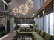 - فقط عدم وجود سقف بين الطوابق سيسمح باستخدام ديكور عالٍ غير عادي وأنيق في الغرفة ، مثل ثريا حديثة معلقة منخفضة ، أو شجرة معيشة حقيقية أو شجرة عيد الميلاد الضخمة للعام الجديد..