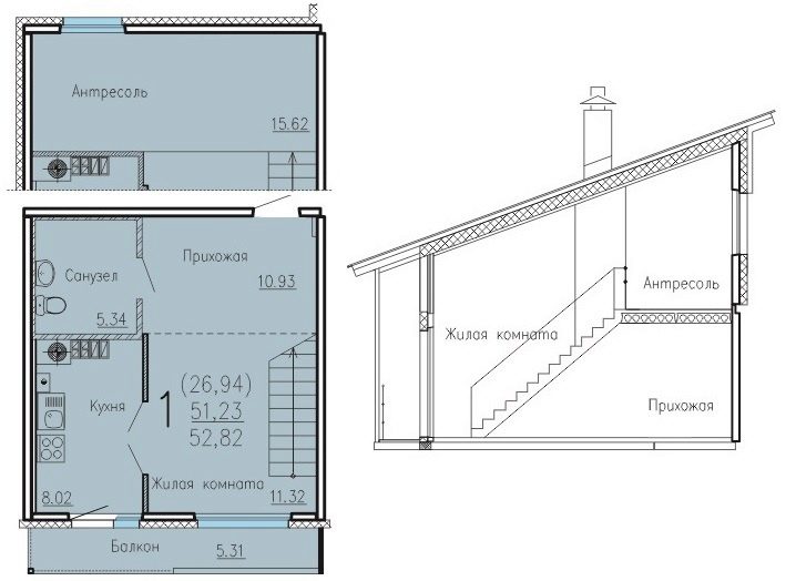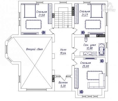 تقنية “الضوء الثاني” التي اخترعها أسلافنا تأتي للإنقاذ. يتم تنفيذه عن طريق إزالة السقف فوق إحدى الغرف – وهذا يجعل من الممكن نقل المساحة الموجودة فوقه إلى مستويين. لا يزال السقف فوق باقي الغرف سليمًا ، مما يسمح بترتيب غرف النوم في الطابق الثاني.