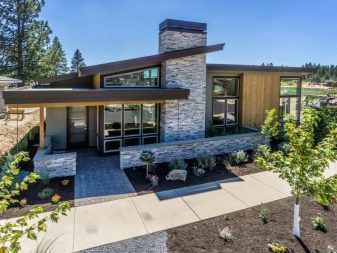 - شيوع. يعتمد الأسلوب على الحد الأقصى من الوظائف. يكاد يكون من المستحيل العثور على تجاوزات معمارية في تصميم هذه المنازل – كل شيء مناسب قدر الإمكان ، لا توجد زخارف وعناصر زخرفية. لتسليط الضوء على المنزل ، وكذلك الزخرفة الإضافية ، يوصى باستخدام الألوان والمواد المتناقضة..