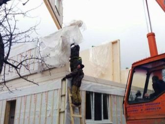 - تركيب البيت. بعد أن يصبح الأساس جاهزًا تمامًا ، يمكنك البدء في بناء المنزل نفسه. أثناء عملية التثبيت ، يجب الانتباه عن كثب إلى الحد الأقصى من الختم ، وكذلك استخدام رغوة البولي يوريثان ومواد العزل. سيخلق هذا مستوى عالٍ من الراحة ويضمن متانة المبنى..