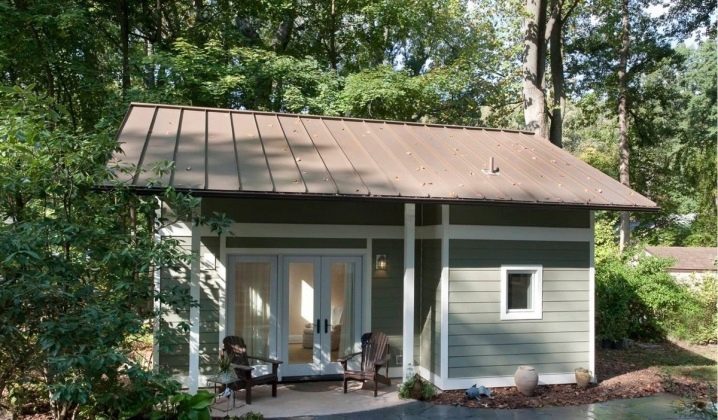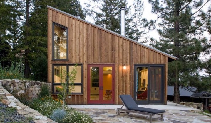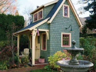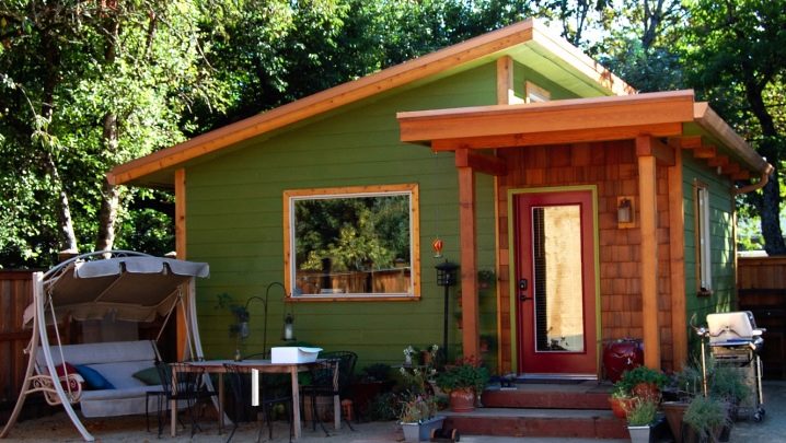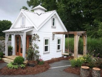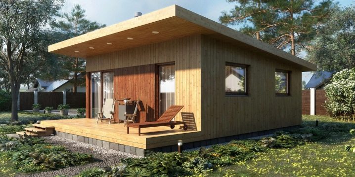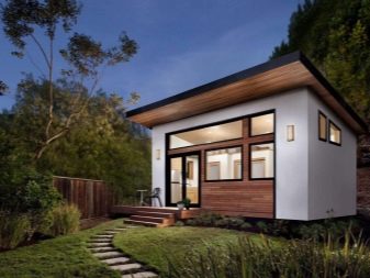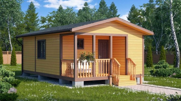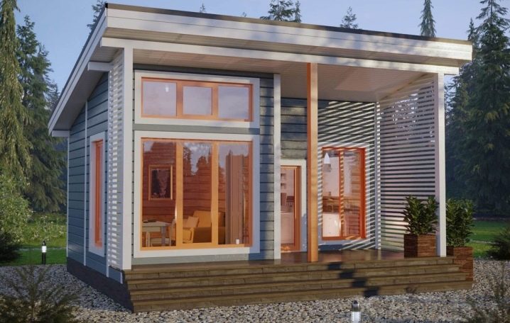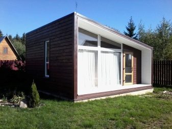 لا تبدو أسقف السقيفة مألوفة بما فيه الكفاية: رؤية مثل هذا المنزل في الواقع ، من المؤكد أن المارة سيراقب عينيه. في الأمثلة التالية ، يمكنك أن ترى كيف سيبدو إطار متواضع الحجم مع سقف في منحدر واحد..