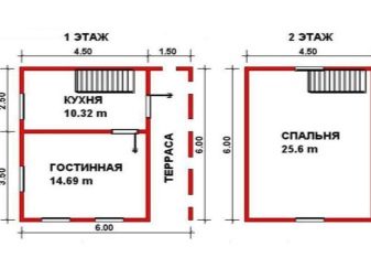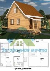 - منزل بنفس الأبعاد ، 6 × 6 م ، فقط بدلاً من الشرفة ، يوجد تراس ، وهو بالفعل شرفات. هذا هو السبب في أن المطبخ يزيد بالفعل عن 10 أمتار ، وتصل غرفة المعيشة إلى ما يقرب من 15. غرفة النوم في الطابق الثاني 25.6 مترًا ، كبيرة جدًا.