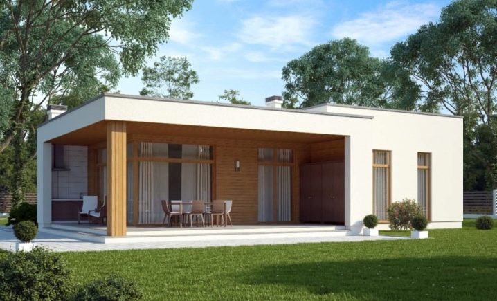 ولكن بالإضافة إلى السقف المائل ، هناك خيارات على الإطلاق بدون سقف. بتعبير أدق ، إنها مسطحة بشكل غير عادي بالقرب من المنزل..