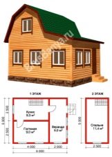 - الطابق الأول عبارة عن غرفة معيشة ومطبخ وشرفة أرضية. الموقع المعتاد لما يسمى بمنطقة الاتصال. تبلغ مساحة غرفة المعيشة 13 مترًا فقط ، والمطبخ يزيد قليلاً عن 9 أمتار ، وتبلغ مساحة الشرفة الأرضية المجاورة للجزء الرئيسي من المبنى حوالي 11 مترًا ، والغرف صغيرة ، لكن المنزل نفسه نموذجي 6 × 6 متر. الثانية بأكملها تشغل غرفة نوم العلية 17 مترًا تقريبًا ، لأنها مصممة للاستخدام الصيفي. لكن المباني الإضافية وحتى الإضافات قد تظهر في النهاية على الموقع.