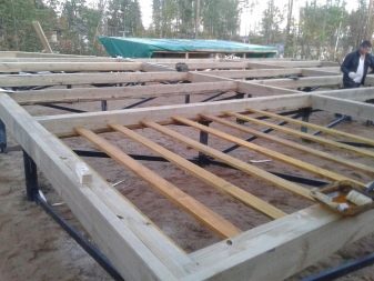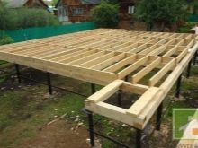 أصغر عرض للوحة هو 30 سم ، والارتفاع من 15 سم ، ويتم تثبيت السجلات على العوارض ، والتي يتم تضمينها في أساس منزل الإطار. عند ترتيب سجل على أساس خرساني وبلاطة ، فإن الأمر يستحق وضع مادة مانعة لتسرب المياه. يجب ألا تقل المسافة بين الفواصل الزمنية عن 40 سم ، وهذا سوف يوزع الحمل بالتساوي على الهيكل بأكمله.