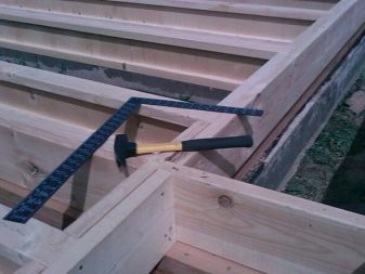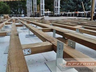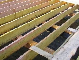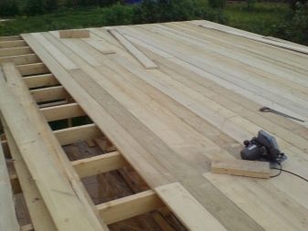 سمك العارضة 20 سم ، قبل ترتيب العجينة ، يجب استخدام مواد العزل المائي (مادة التسقيف) على العوارض. بعد الانتهاء من تركيب الحزم الرئيسية. يتم تركيب أرضية فرعية في الأعلى على شكل بلاطة: