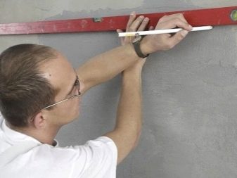 بادئ ذي بدء ، يتم فحص أفقي الجدار باستخدام خط راسيا. يتم فحص موضع الجدار على طول الارتفاع بالكامل ، ويتم وضع العلامات على طول قاعدة الأساس.