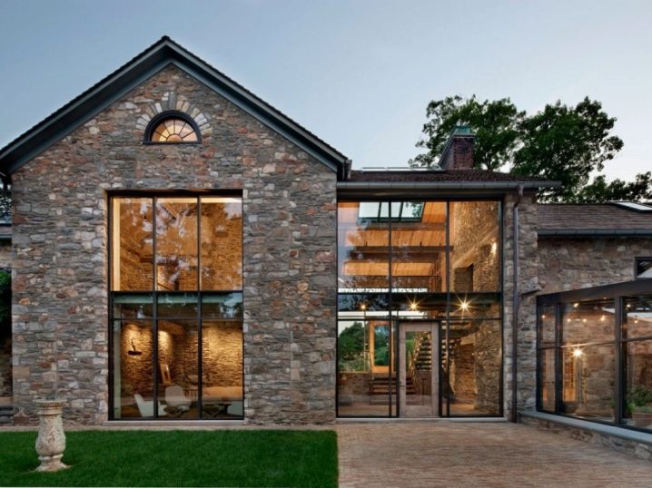 غالبًا ما يتم الجمع بين الأعمال الحجرية والألواح الخشبية. في الوقت نفسه ، تبدو حالة إبراز العناصر الهيكلية الفردية أصلية للغاية..