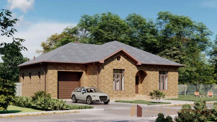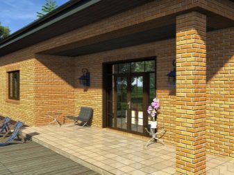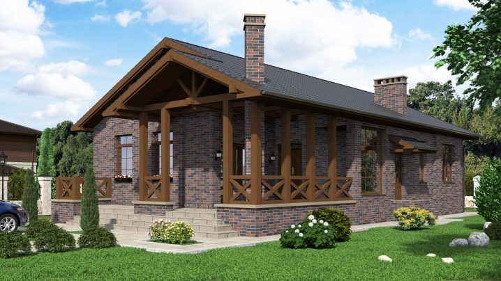 غالبًا ما يتم تشييد المنازل المكونة من طابق واحد مع شرفات مفتوحة. يصبحون مكانًا للراحة لجميع أفراد الأسرة. إذا كان لديك سيارة ، فيمكنك اختيار مشروع به مرآب في الطابق الأرضي.