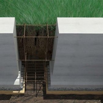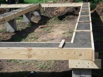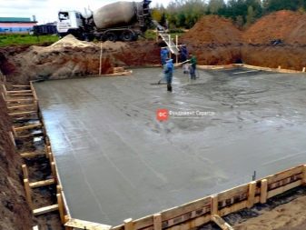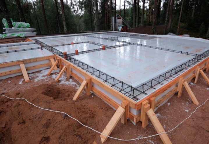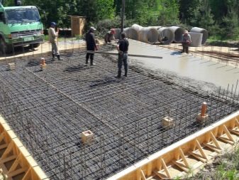 - خلق إطار خرساني. يتم تركيب القوالب فوق المنطقة المحيطة بالقاعدة بأكملها ، ويتم تثبيت إطار تقوية فيها ، ويتم صب خليط خرساني.
