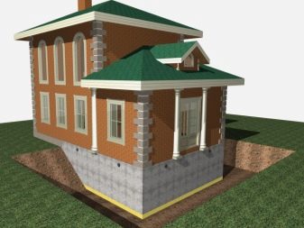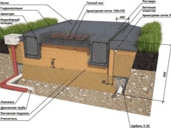 بالنسبة للمباني المكونة من طابقين في المناطق ذات مستوى الأرض المرتفع ، يجب تقوية أساس البلاطة أو الركيزة بشكل إضافي بسبب الوزن الكبير للمبنى. أو قم بإنشاء نظام صرف وتصريف خاص وإنشاء قاعدة شريطية مدفونة بعمق. في هذه الحالة ، يجب أن يكون عمق تثبيت الشريط بالضرورة أقل من مستوى تجميد التربة ، وإلا فإن قوى الرفع ستدمر القاعدة بمرور الوقت. يعد هذا الخيار رائعًا للمناطق الجنوبية ، حيث لا تتجمد التربة بأكثر من 0.5-0.8 متر.