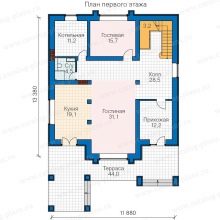 يجب أن تحتوي المنازل الريفية الجميلة المصنوعة من الطوب مع العلية على غرفة معيشة لائقة – وإذا كانت مساحتها 21 مترًا مربعًا. م ، سوف يتحول بشكل جيد للغاية. ميزة هذا الحل هو وجود رواق. وأيضا المشروع لديه: