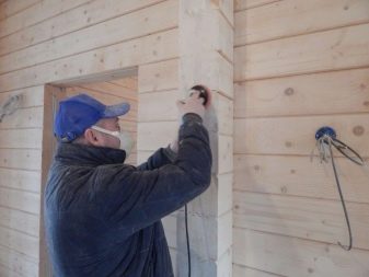 - لا ينبغي أن يتم تركيب إطارات النوافذ والأبواب مباشرة على جذوع الأشجار ، ولكن على غلاف خاص. سيقلل هذا الحل بشكل كبير من مخاطر تشوهها أثناء انكماش المبنى..