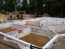 غالبًا ما يتم بناء الأساس من أكوام. يتم تشكيل الحزام من لوح جاف معالج بمثبطات الحريق. في بعض الأحيان ، باتباع التعليمات من الشركة المصنعة للمجموعات المنزلية ، يمكنك حتى تجميع المسكن بنفسك..