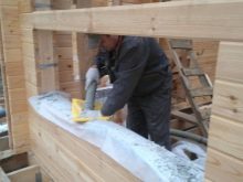 بعد المعالجة على الماكينة ، تحصل الأخشاب على شكل وملف جانبي محدد بدقة ، وتكتسب سطحًا أملسًا. يجب ممارسة قطع المسامير والأخاديد ، ثم تشكيل مجمع متكامل “شوكة الأخدود”. يتميز هذا الحل بإلغاء الحاجة إلى العزل بين الصفوف ، والذي يستخدم عادةً في المباني الخشبية. يتم ضمان مفاصل الزاوية على شكل كوب لمنع تجمد الزاوية وحدوث المسودات. في معظم الحالات ، لا يتم توفير العزل الرئيسي بواسطة ecowool ، ولكن بواسطة الصوف المعدني.