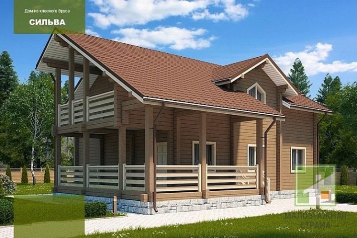 يمكن استخدام الخشب الرقائقي اللاصق لبناء منزل فاخر من طابقين بمساحة 150 مترًا مربعًا. م الأبعاد العامة للمبنى – 11×7.7 م.